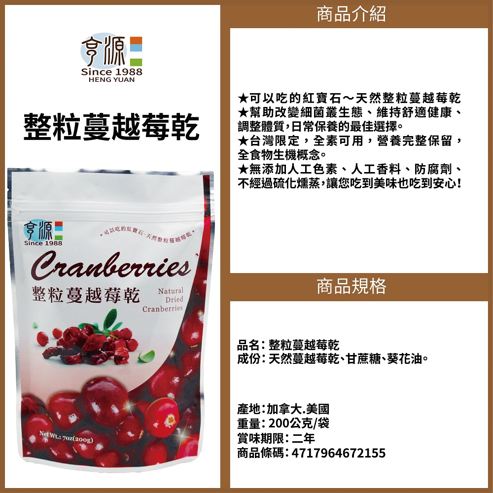 天然蔓越莓乾、甘蔗糖、葵花油。